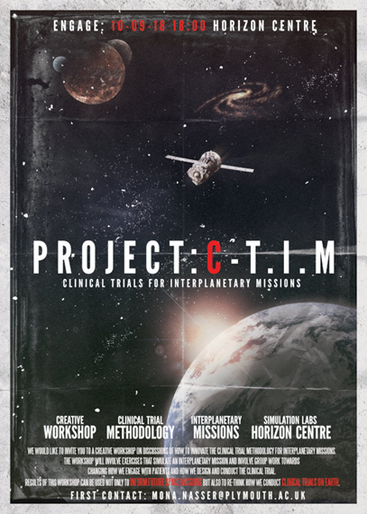 Poster of our first workshop in Sep 2018 - Called Clinical Trials in Interplanetary Missions (Designed by Nick Peres